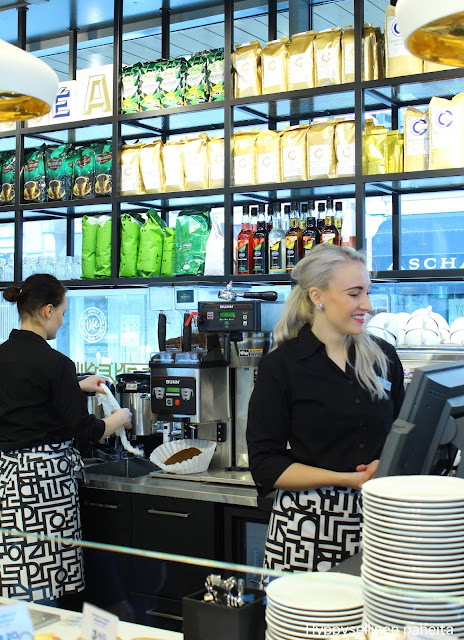 Tämä aamu alkoi kuitenkin valmiiseen aamupalapöytään istahtamalla, avecina herra 9,5kk. Pääsin tutustumaan uuteen Fazer Café Vaasaan, joka avasi ovensa tänään toripaviljongissa. Omat kokemukseni Fazer Cafés -konseptista rajoittuvat Helsingin Kluuvinkadun kahvilaan, joten olikin mielenkiintoista nähdä toteutunut Vaasan kahvila :)